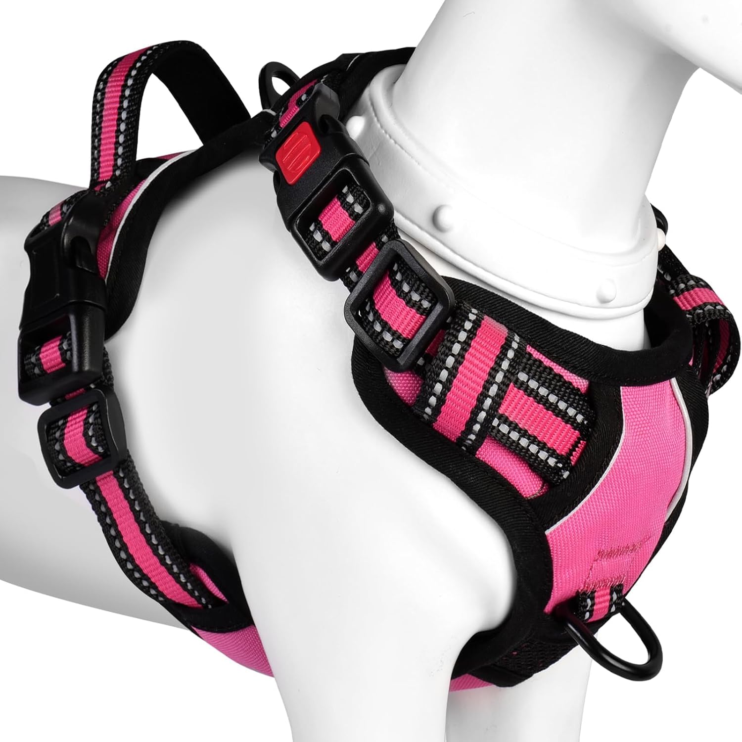 BaoCheng NO Pull Dog Harness,for Small Medium Large Dogs,Adjustable,Reflective Without Going Over Head No-Choke Pet Oxford Vest,Easy to Put on and Take Off,with 2 Leash Clips(Hot Pink,M)