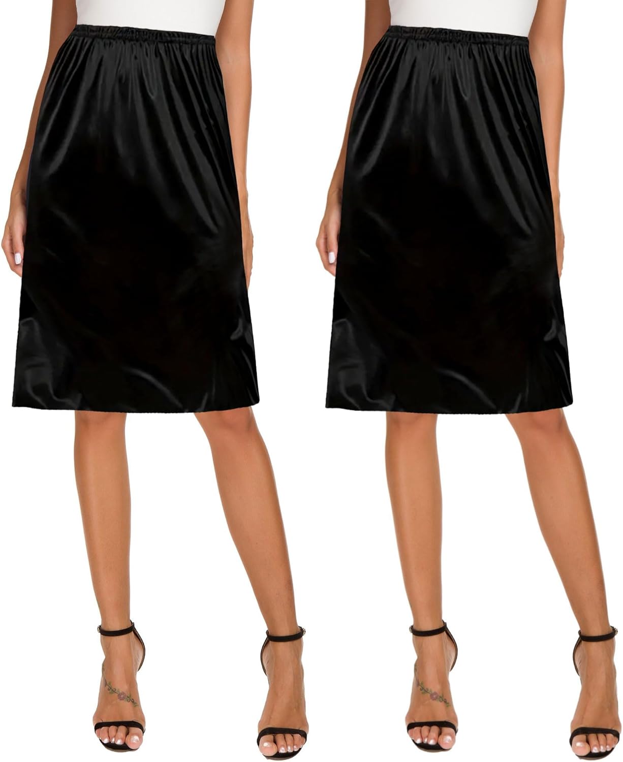 Ellames Women's 2 Pieces Half Slips for Under Dresses Satin Long Underskirt Half Slip Shirt Skirt Extender
