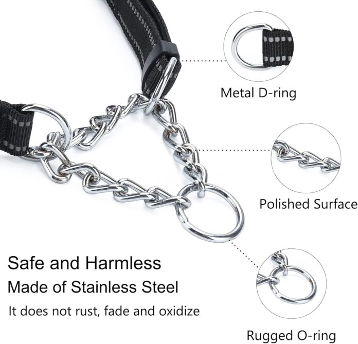I tested the Martingale Collar for Dogs, Reflective Stainless Steel Chain Safety Adjustable Martingale Collar for Small Medium Large Dogs (Small, Black) to see how it performs in real life. I wanted a collar that would help with leash training, prevent escapes, and still be comfortable and safe for my dog to wear on walks and during play.